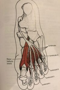 Kiemeltek a nagylábujjhoz kapcsolódó izmok, annak távolító, talpi és lábujjakhoz közelítő izmai, melyek például lábdeformitásokkor elmozdulnak, eltolódnak, funkciójukat nem tudják ellátni, így az átgördülés akadályozott válik, az érzékelés sérül, így az igazán finom alkalmazkodás már nem valósul meg.